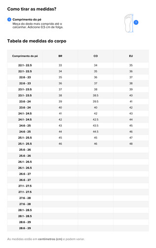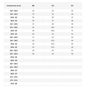 MX11,5 = MX31 (cm) = comprimento em pés 28,5 cm