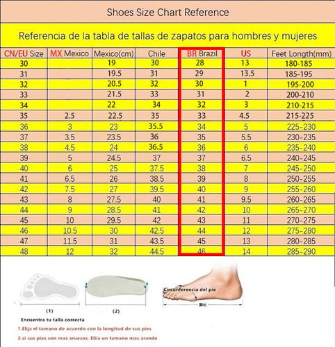 Somos o tamanho padrão internacional (tamanho mexicano), se você confundir o tamanho, escolha o tamanho correto de acordo com o comprimento do pé.