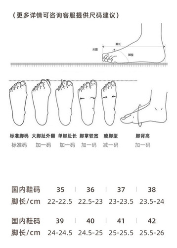 (Recomenda-se medir o comprimento e a largura do pé e solicitar o tamanho mais adequado.)