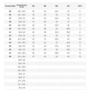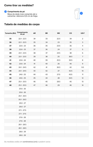 Se você tem pés largos e pés gordos, escolha ***um tamanho acima***