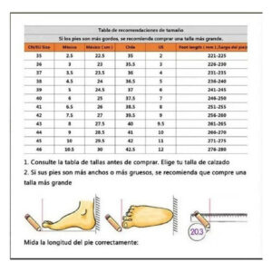 Temos tamanho padrão europeu. Se você tiver dúvidas sobre o tamanho, por favor escolha o tamanho apropriado do pé: Se seu pé é mais grosso ou selvagem, por favor escolha um tamanho maior: