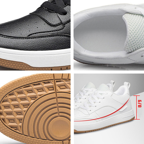 Eleve o seu estilo: nossos tênis masculinos apresentam um design inovador que aumenta discretamente sua altura em 6 a 8 cm, proporcionando confiança e estilo sem comprometer o conforto. Perfeito para qualquer ocasião.