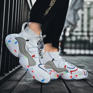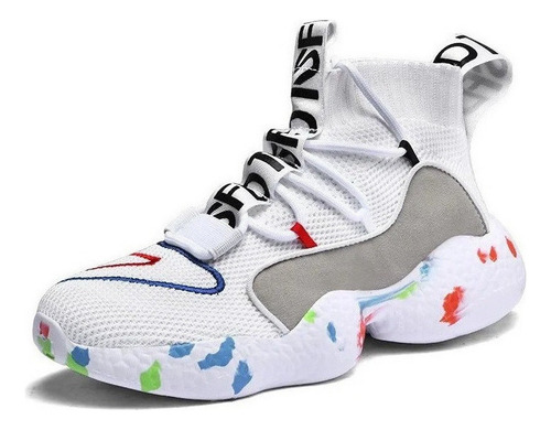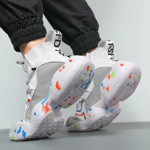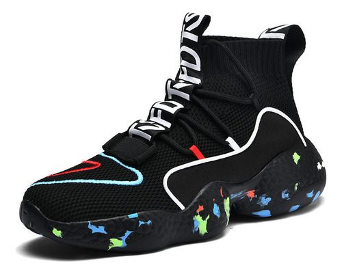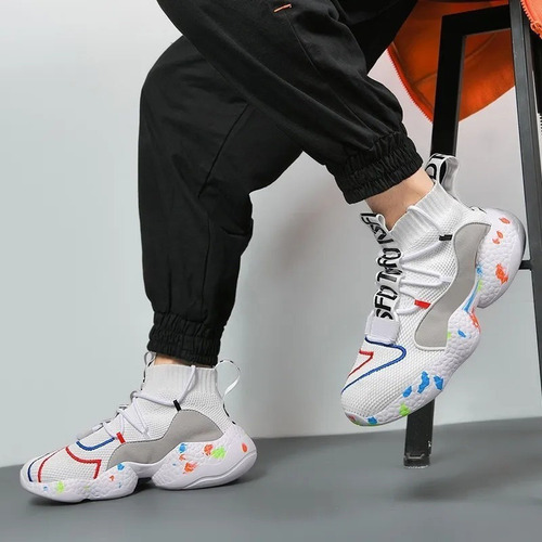 2024 novos tênis de cano alto masculino nova rede voadora de sola grossa hip-hop camuflagem meias sapatos tênis masculinos
