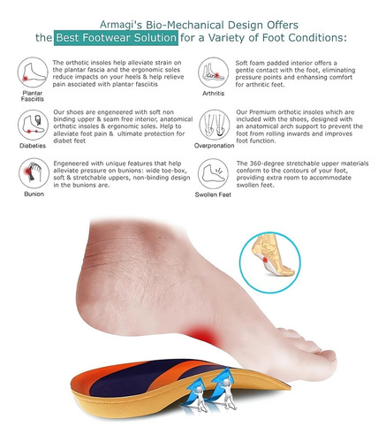 Bom suporte de arco. Nossos designs são projetados para distribuir uniformemente o peso corporal e garantir uma postura equilibrada.