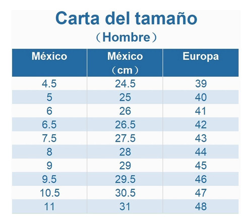 EU39 = México 4,5 = México 24,5 = comprimento do pé 24,5 cm