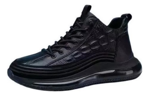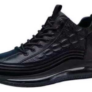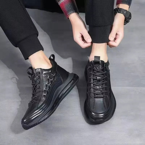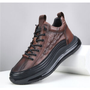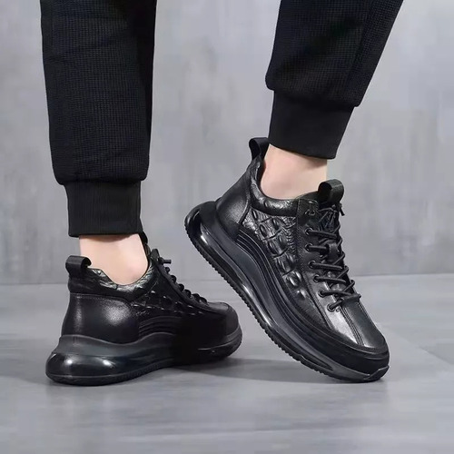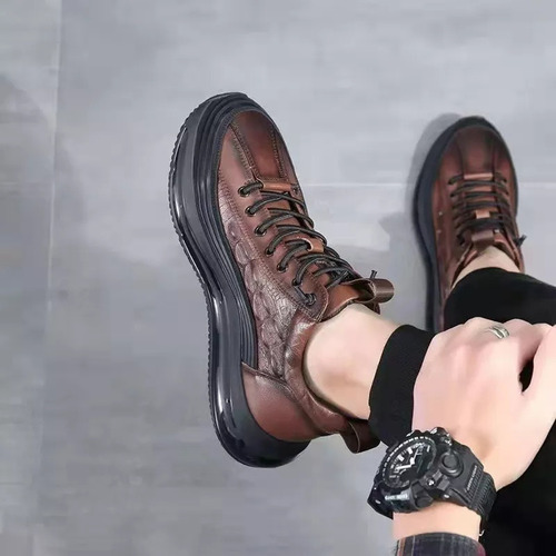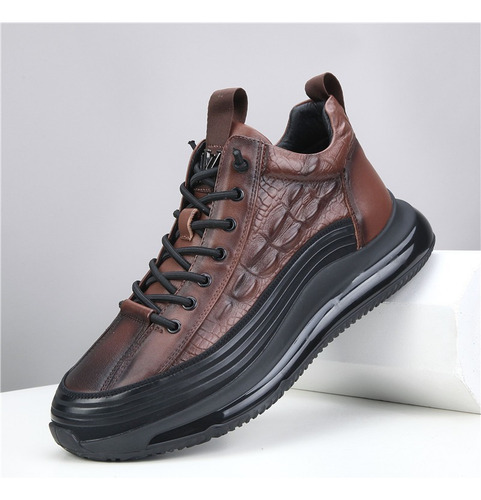 6. Sapatos casuais masculinos de couro de couro com almofada de ar, tênis masculinos da moda com estampa de crocodilo, sapatos confortáveis casuais antiderrapantes, levantamento de altura em couro macio, calçados esportivos com absorção de choque