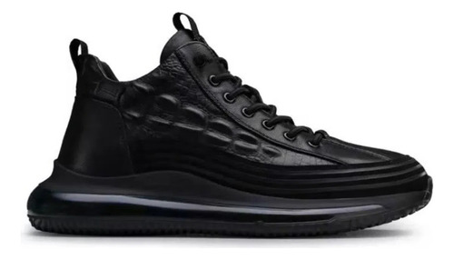 Sapatos casuais masculinos de couro de couro com almofada de ar, tênis masculinos da moda com estampa de crocodilo, sapatos casuais confortáveis