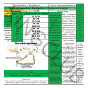 Temos tamanhos padrão do Brasil, se você está confuso sobre o tamanho, escolha o tamanho correto de acordo com o comprimento do seu pé: se você tem pés mais grossos ou selvagens, escolha um tamanho maior (+0,5 cm ou 1 cm)