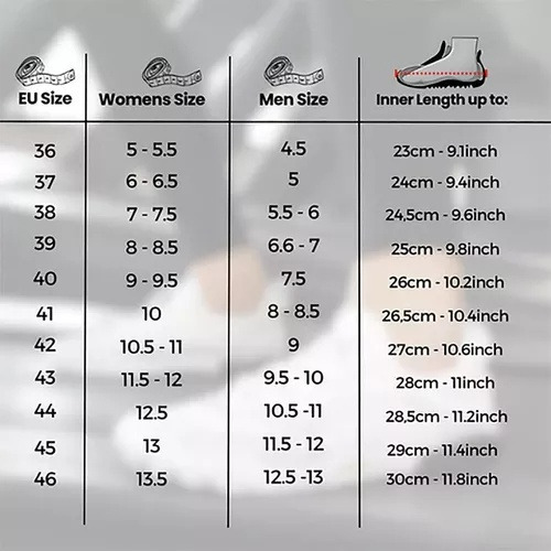 La lista de artículos es EU size, por favor comprar según la longitud de su pie en centímetros.