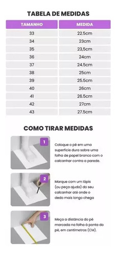 Nota: O tamanho dos sapatos é o tamanho chinês.