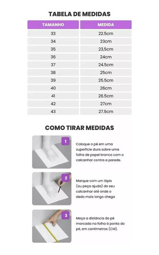 – Forma flexível que se encaixa perfeitamente nos pés para garantir conforto