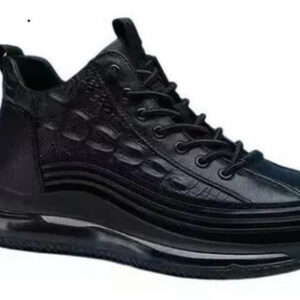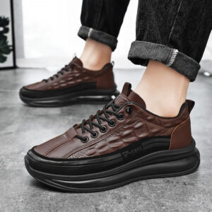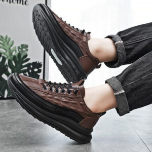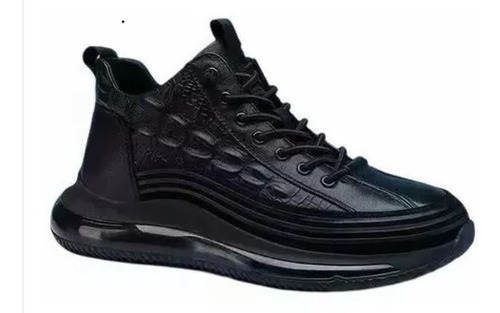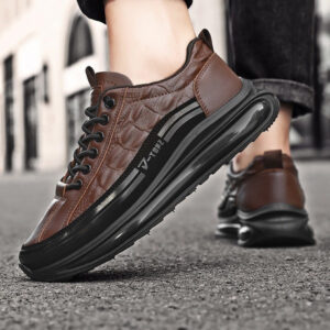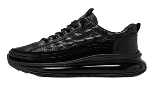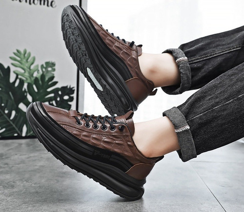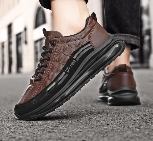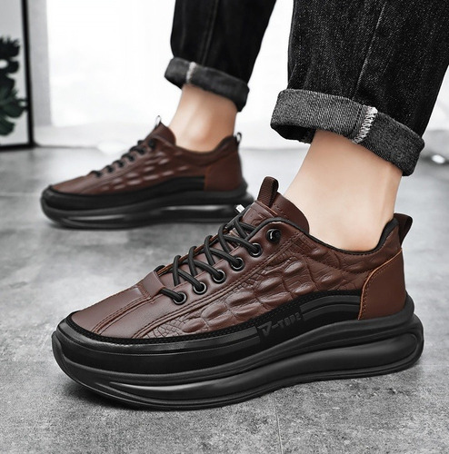 Sapatos casuais masculinos de couro de couro com almofada de ar, tênis masculinos da moda com estampa de crocodilo, sapatos confortáveis casuais antiderrapantes, levantamento de altura em couro macio, calçados esportivos com absorção de choque
