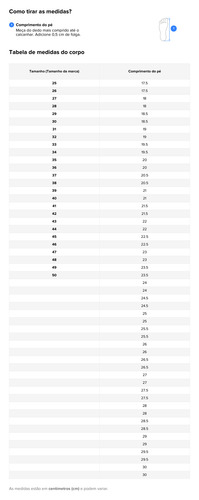 Tamanho: 35, 36, 37, 38, 39, 40, 41, 42, 43, 44, 45, 46 Número do