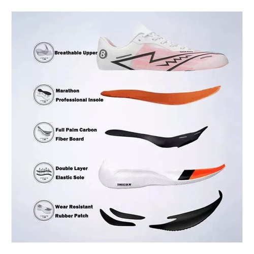 Materiais da sola: rubber+MD+carbon plate