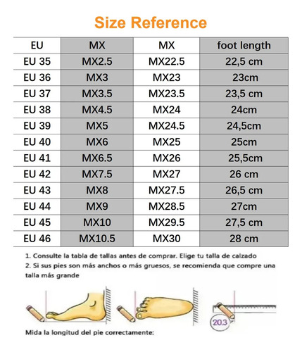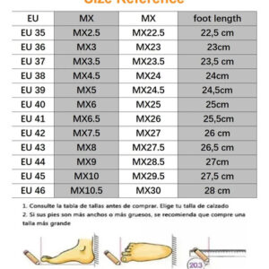 A lista de itens é do tamanho da UE. Compre de acordo com o comprimento do pé em centímetros.
