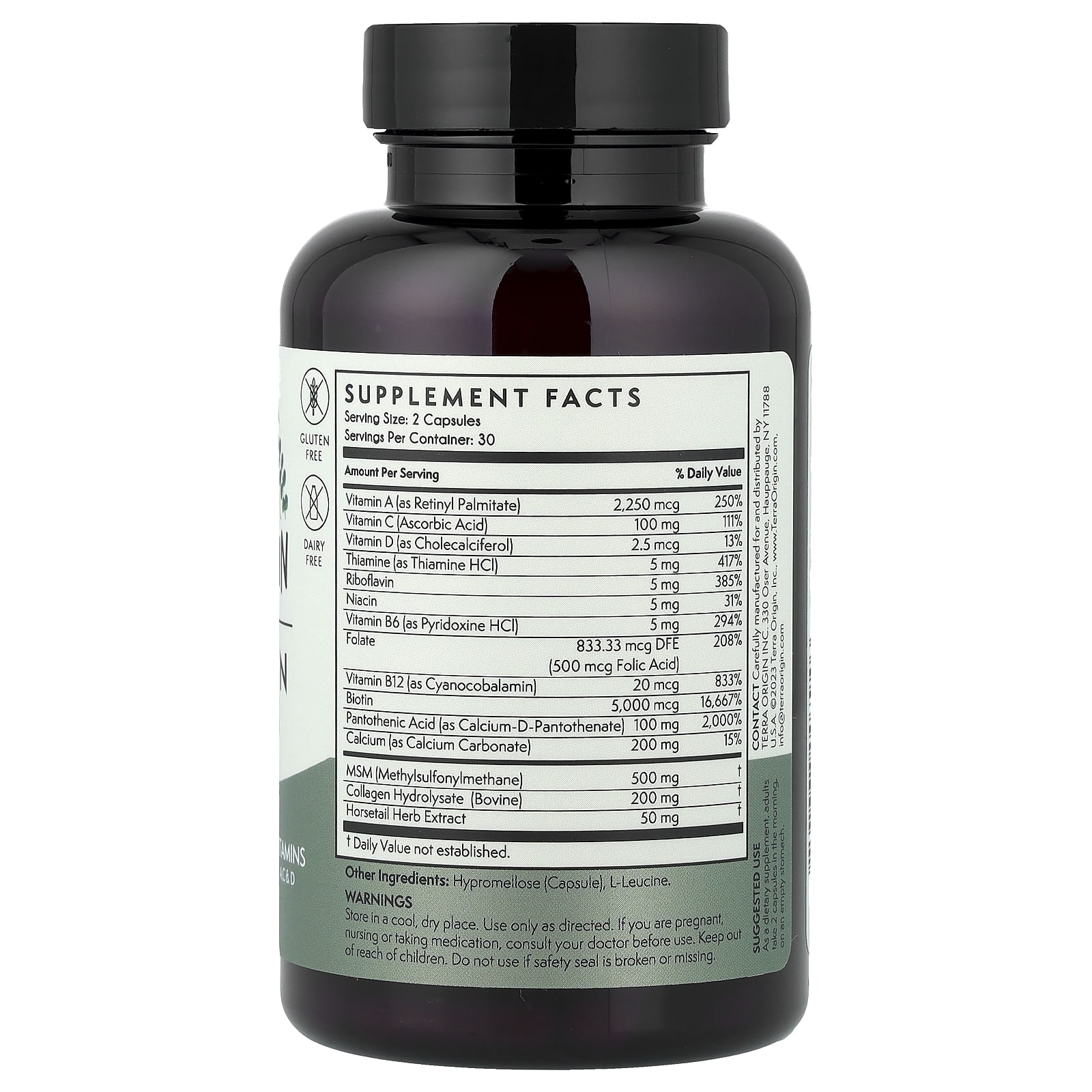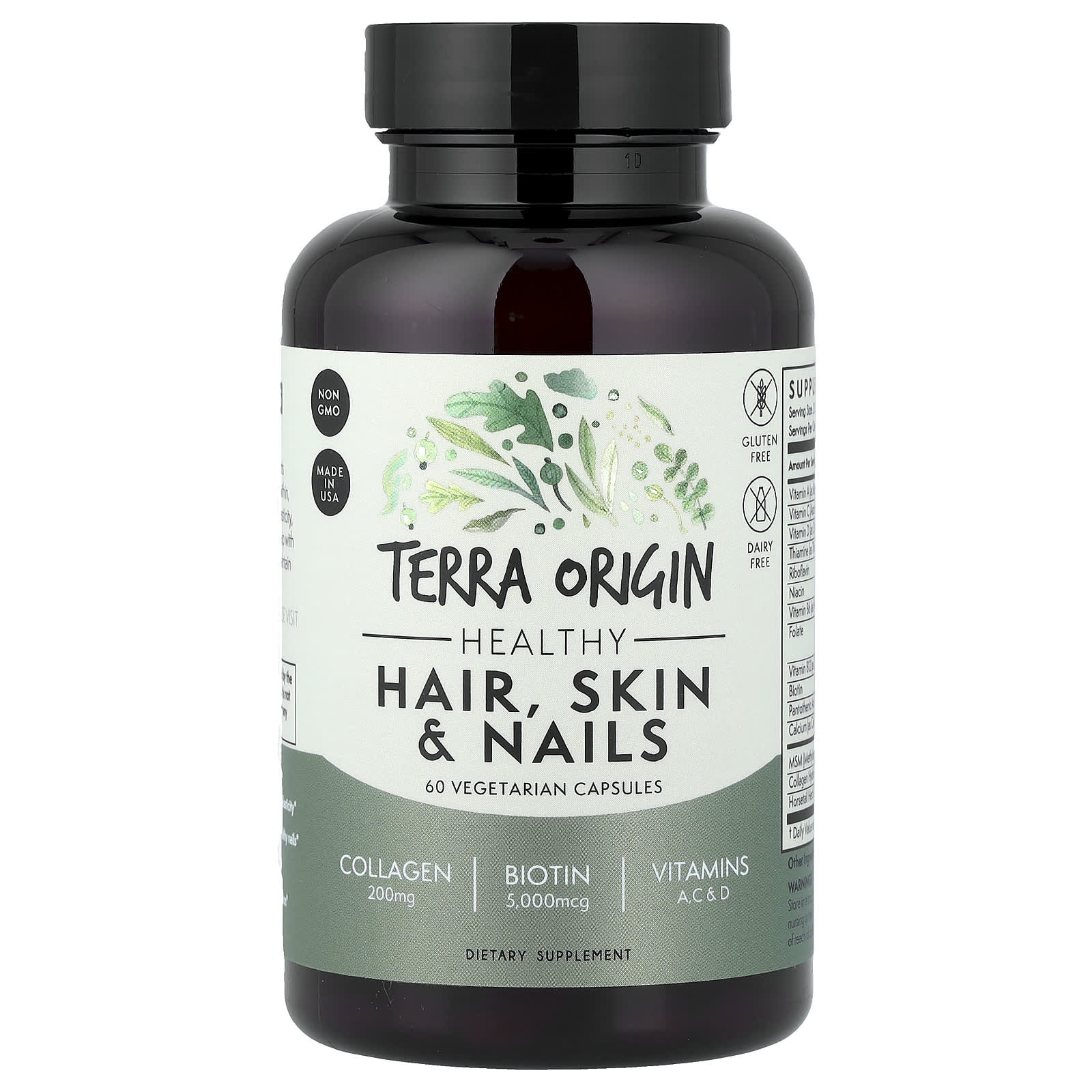 Terra Origin Cabelos Pele e Unhas Saudáveis 60 Cápsulas Vegetarianas – Terra Origin Suplementos Cabelos, Pele e Unhas Fórmulas para cabelos, pele e unhas.