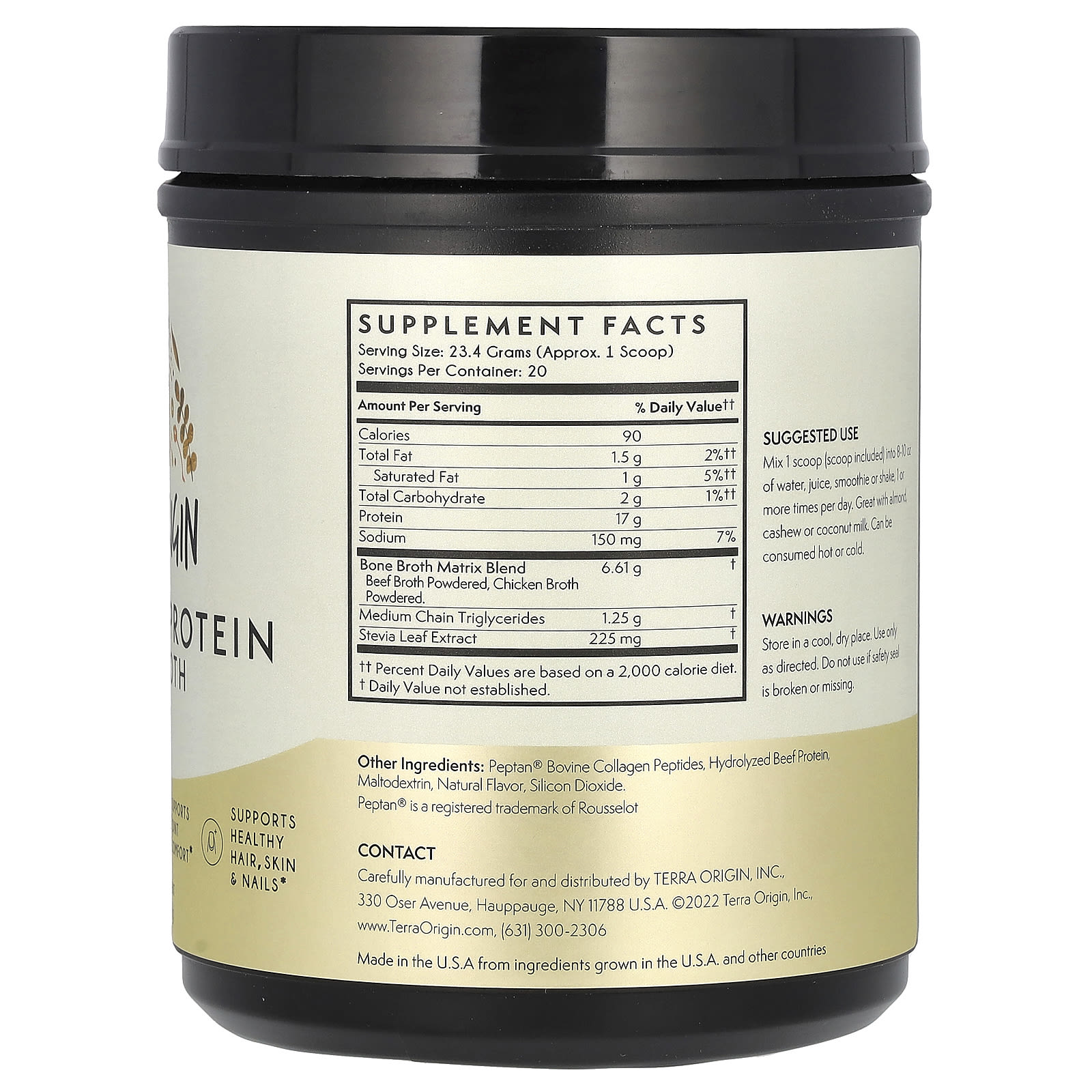 Terra Origin Caldo de Colágeno + Proteína Osso Baunilha 466 g (1643 oz) – Terra Origin Suplementos Ossos, Articulações e Cartilagem Caldo de ossos Nutrição Esportiva Proteína Proteína Animal Proteína De Carne.