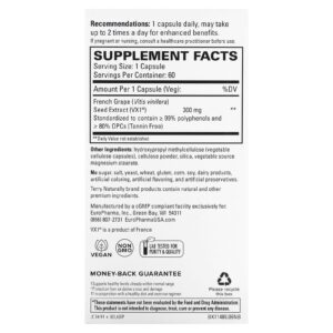 Terry Naturally Clinical OPC 300 mg 60 Cápsulas – Terry Naturally Suplementos Antioxidantes Flavonoides Proantocianidinas Oligoméricas (OPC) Extrato de semente de uva.