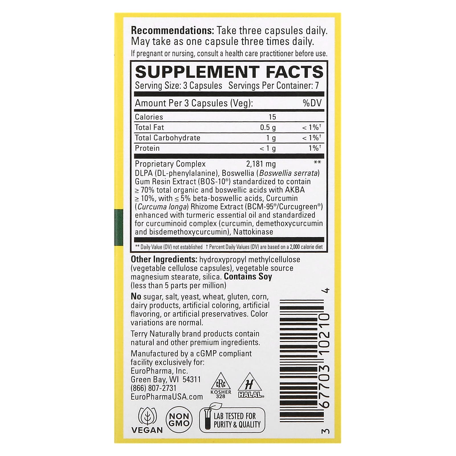 Além de ingredientes naturais, os produtos da marca Terry Naturally contêm outros ingredientes premium.