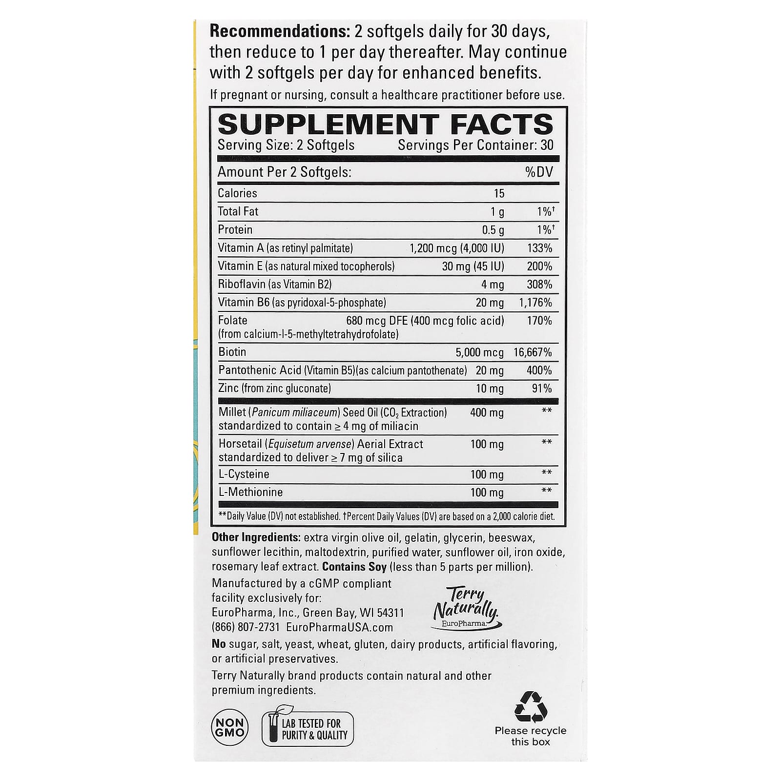 Terry Naturally Fórmula de renovação capilar 60 Softgels – Terry Naturally Suplementos Cabelos, Pele e Unhas Fórmulas para cabelos, pele e unhas.