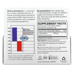 Clinical Glutathione ™ é protegido por um processo exclusivo e patenteado. Um estudo publicado em humanos relatou uma melhoria incomparável de 230% nas taxas de glutationa saudável em comparação com a glutationa não protegida.