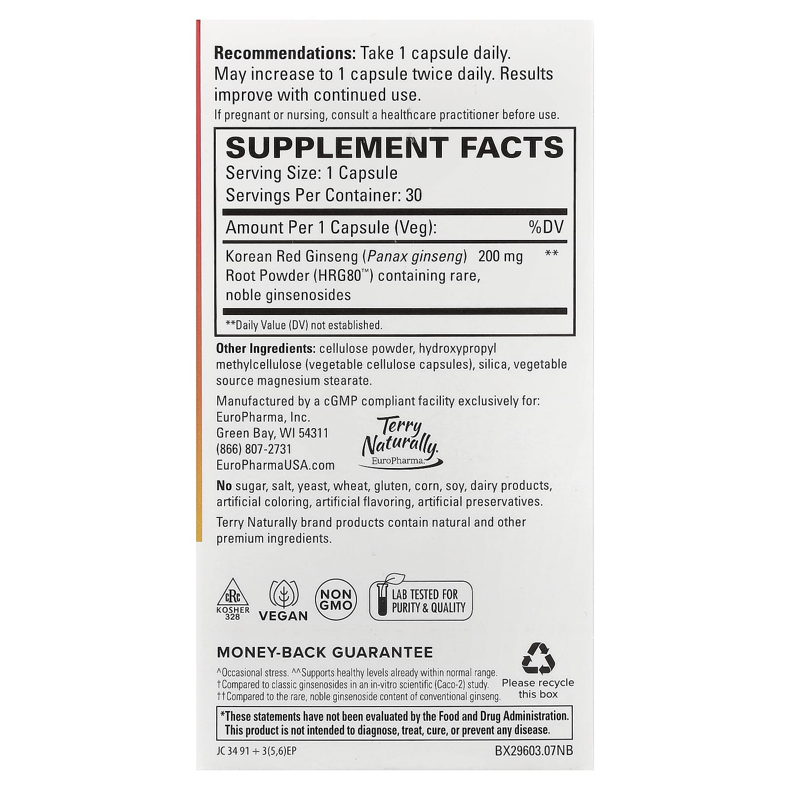 Terry Naturally HRG80™ Energia de Ginseng Vermelho 30 Cápsulas (200 mg por Cápsula) – Terry Naturally Suplementos Ervas Ginseng.