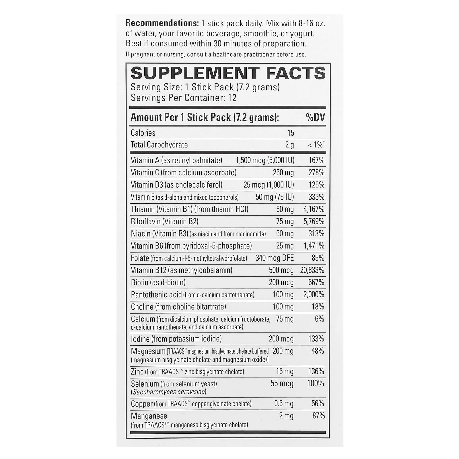 | Manganês (de bisglicinato de manganês quelato TRAACS™) | 2 mg | 87% |