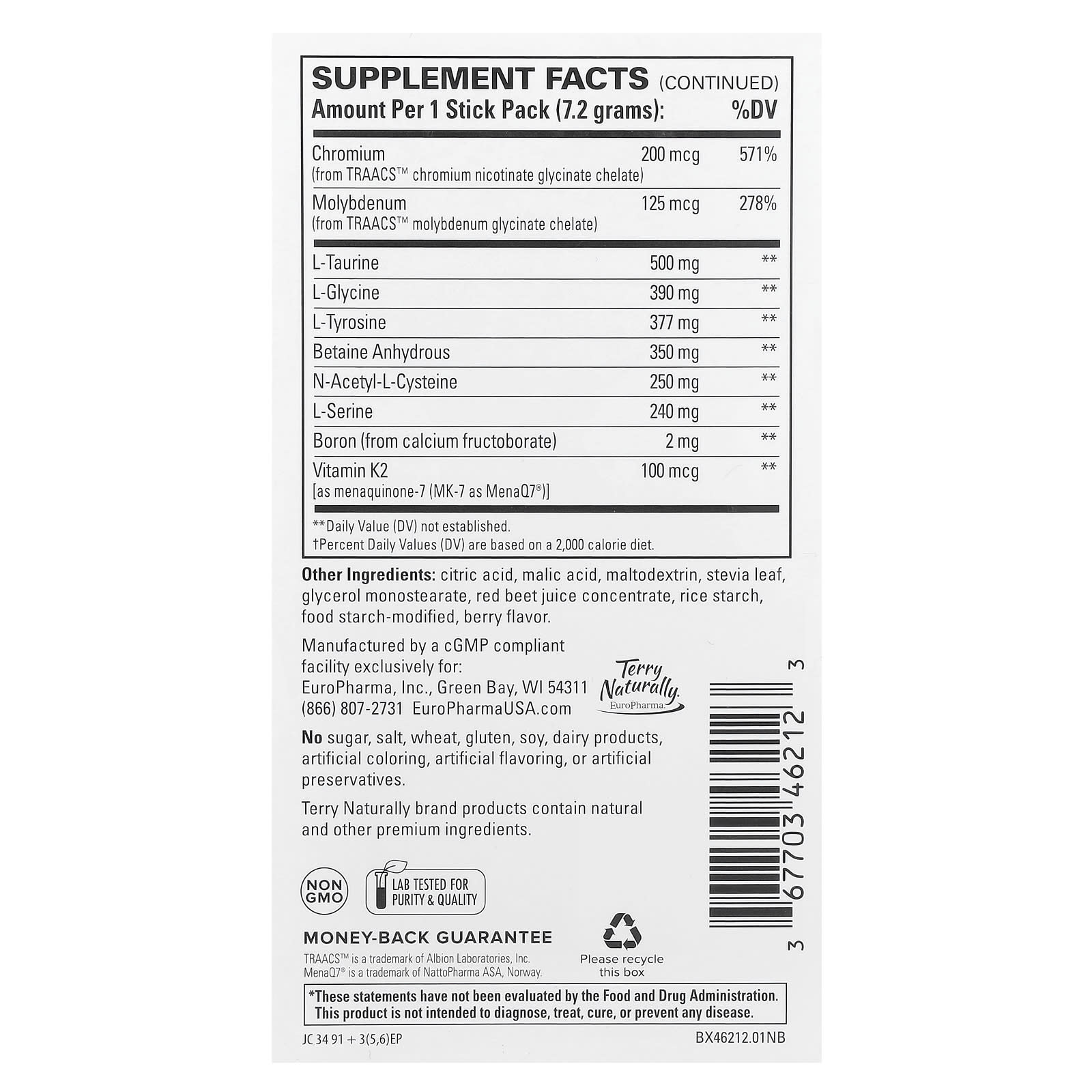 | Cromo (de glicinato de nicotinato de cromo TRAACS™) | 200 mcg | 571% |