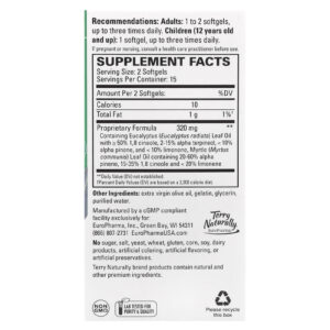 Terry Naturally SinuCare™ com Eucalipto 30 Cápsulas Softgel – Terry Naturally Suplementos Olhos, Ouvidos e Nariz Nasal e Sinusal.