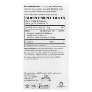Terry Naturally Thyroid Care™ 60 Cápsulas – Terry Naturally Suplementos Minerais Iodo Aminoácidos L-Tirosina.