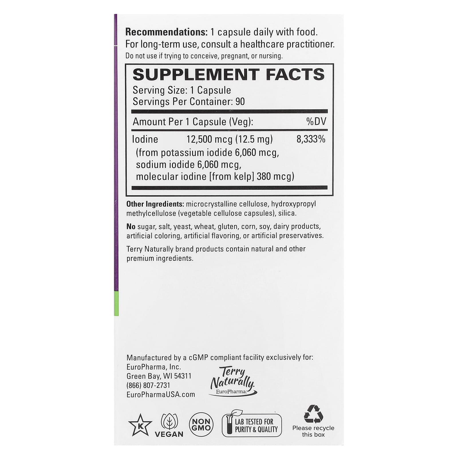 Terry Naturally Tri-Iodine 125 mg 90 Cápsulas – Terry Naturally Suplementos Minerais Iodo.