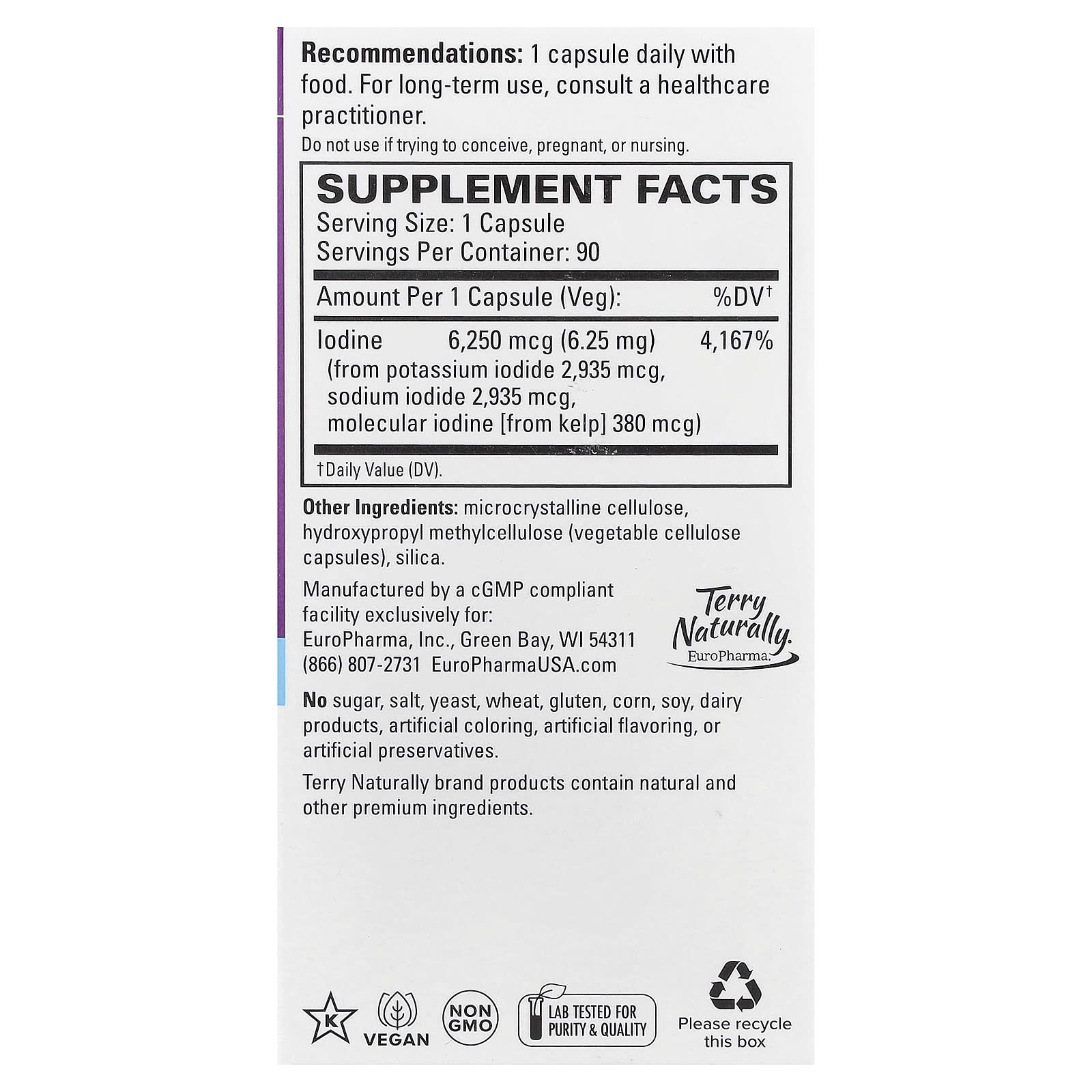Terry Naturally Tri-Iodine® 625 mg 90 Cápsulas – Terry Naturally Suplementos Minerais Iodo.