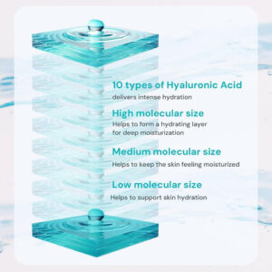 Este creme hidrata profundamente com 10 tipos de ácido hialurônico, deixando a pele macia, fresca e revitalizada.