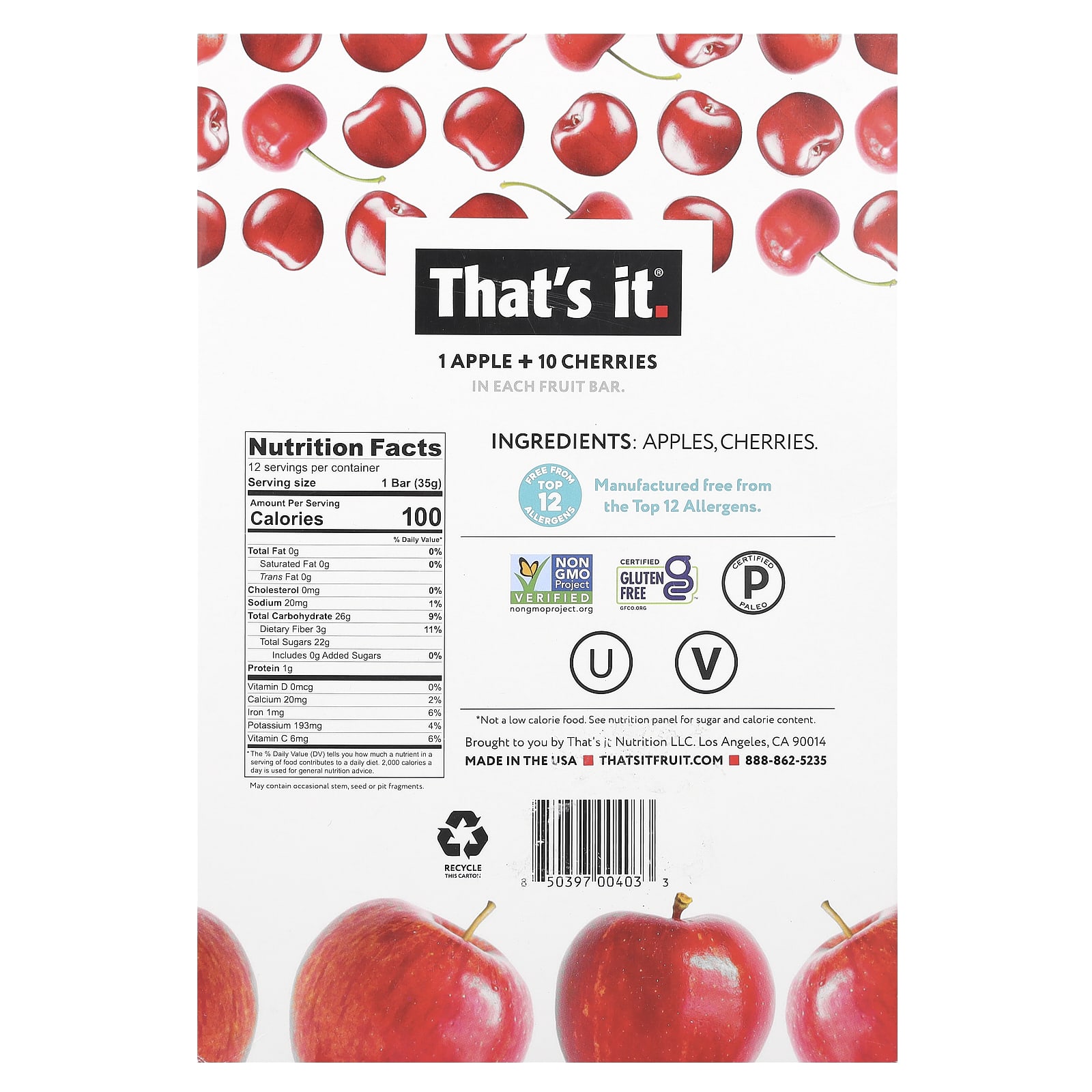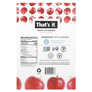 Thats It Barras de Frutas Maçã + Cerejas 12 Barras 35 g (12 oz) Cada – That’s It Alimentos Barras Barrinhas para lanche Petiscos e lanches Snacks de frutas e vegetais.