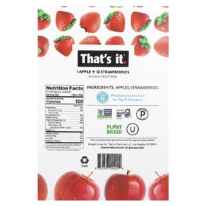 Thats It Barras de Frutas Maçã + Morangos 12 Barras 35 g (12 oz) Cada – That’s It Alimentos Barras Barrinhas para lanche Petiscos e lanches Snacks de frutas e vegetais.