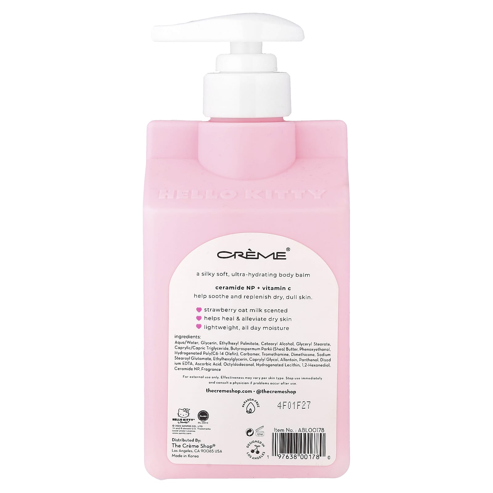 The Creme Shop Hello Kitty® Bálsamo Corporal Advanced Moisture Remedy Leite de Aveia com Morango 500 ml (169 fl oz) – The Creme Shop Cuidados Pessoais Armário do Banheiro Tratamento para Pele Cuidados com o Corpo Cuidado corporal K-Beauty.