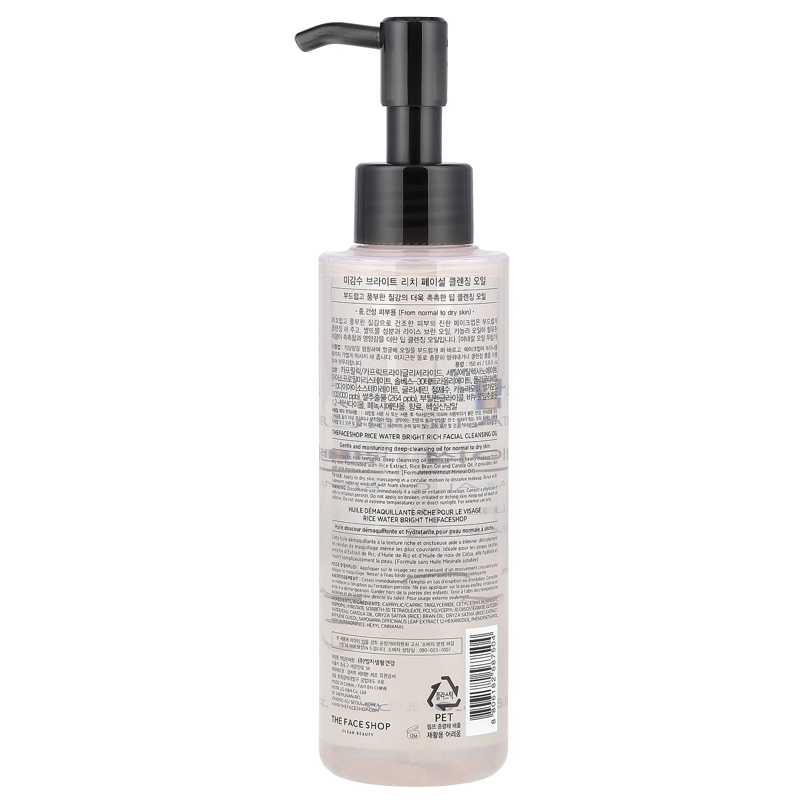 The Face Shop Óleo de Limpeza Facial Nutritivo e Brilhante de Água de Arroz Para Pele Normal a Seca 150 ml (5 fl oz) – The Face Shop Beleza Limpeza Facial Óleos de Limpeza Limpadores faciais K-Beauty.