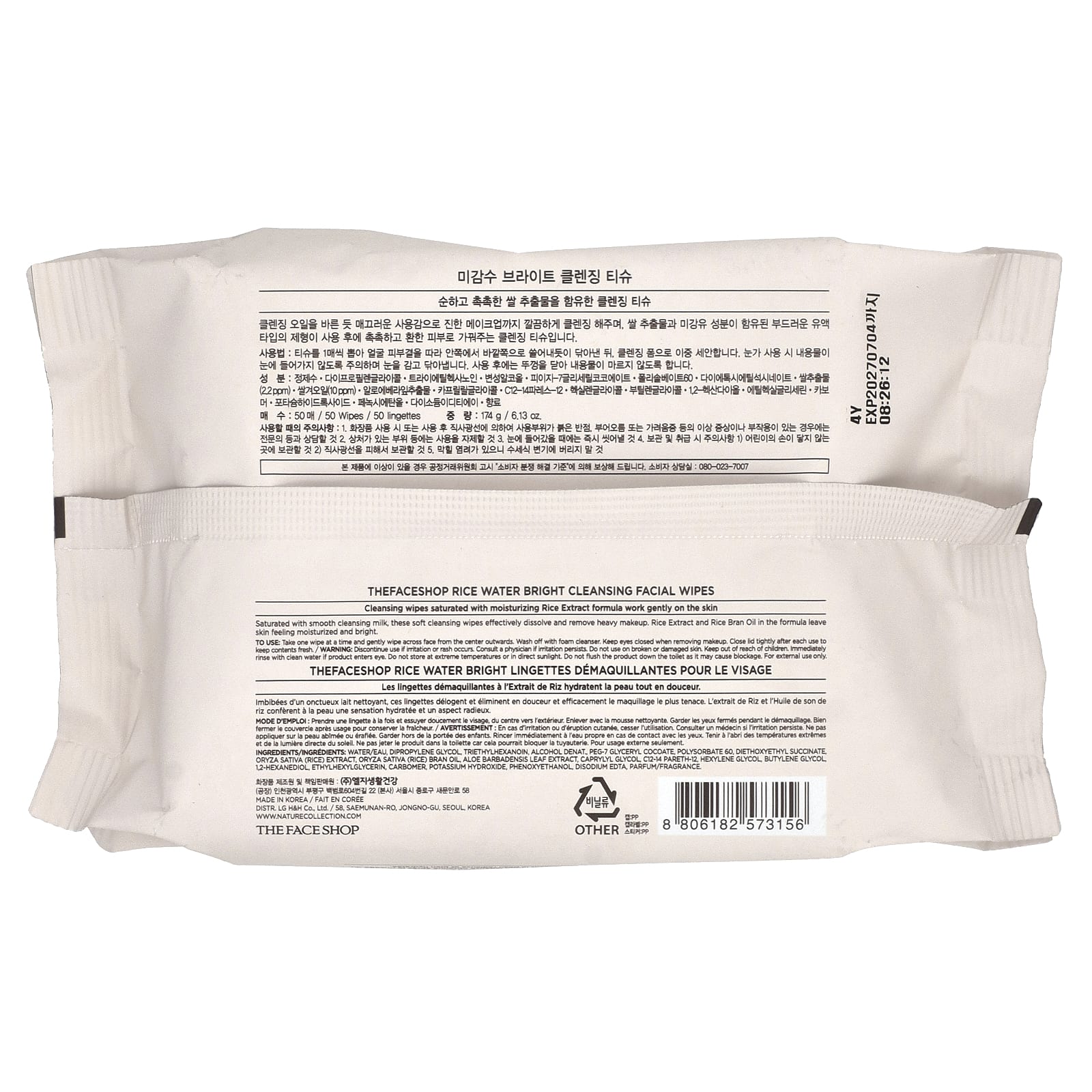 The Face Shop Rice Water Bright Lenços Faciais para Limpeza 50 Unidades – The Face Shop Beleza Limpeza Facial Lenços faciais e umedecidos Lenços faciais K-Beauty.