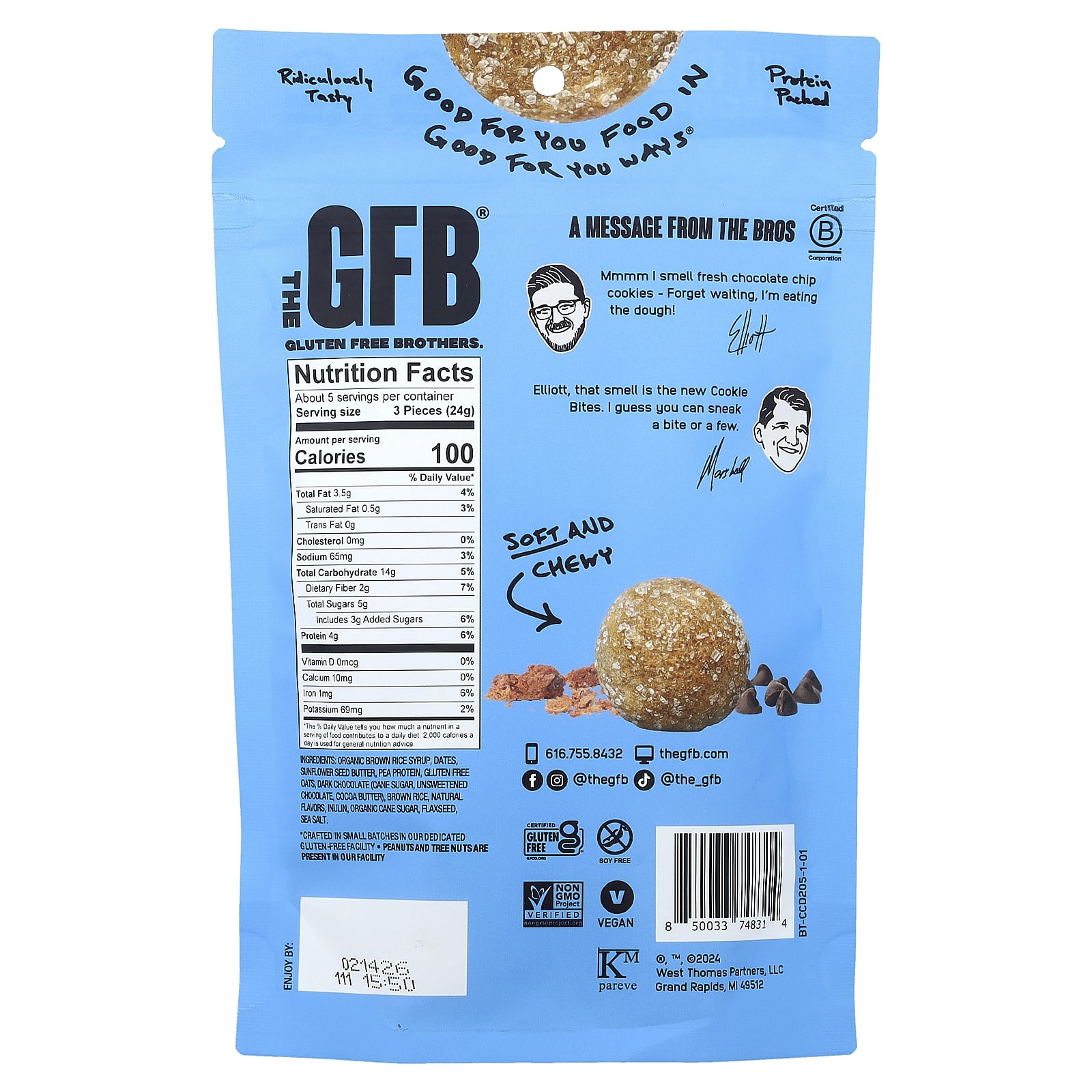 Sem Nozes e Sem Alérgenos Os lanches da Gluten Free Brothers Good para você não contêm glúten, mas estão repletos de um ótimo sabor. Essas bolas energéticas também não contêm frutos secos, sem gordura, sem soja, sem laticínios, sem ovos, sem trigo, sem lactose, sem gordura trans e sem colesterol.