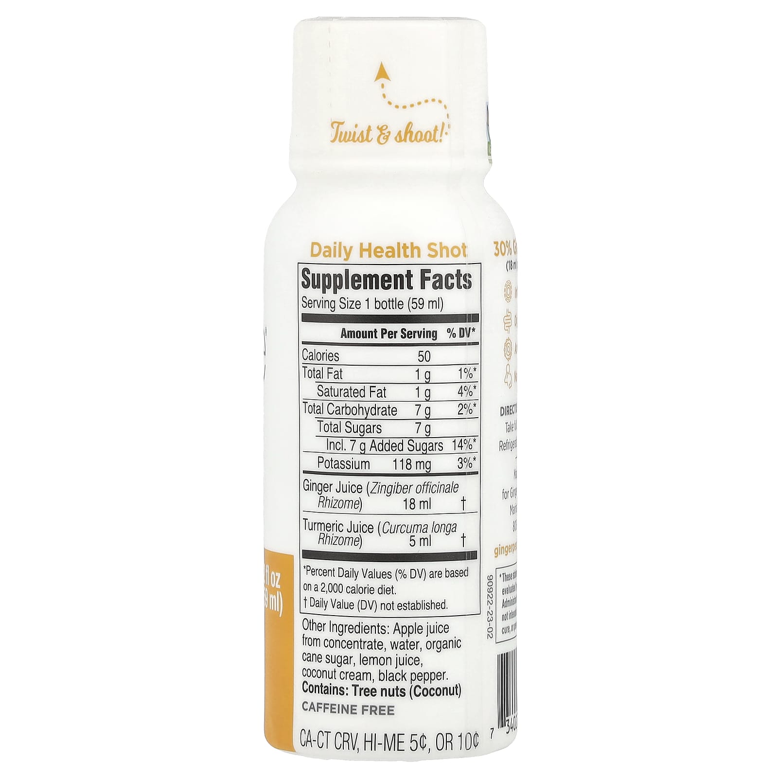 Esta saborosa dose de bem-estar obtém sua qualidade de uma combinação saudável de cúrcuma, gengibre e pimenta-do-reino. Equilibrado com uma pitada de coco cremoso, este suave e cremoso Shot de Cúrcuma e Gengibre fornece um reforço anti-inflamatório com um delicioso sabor picante e herbáceo.