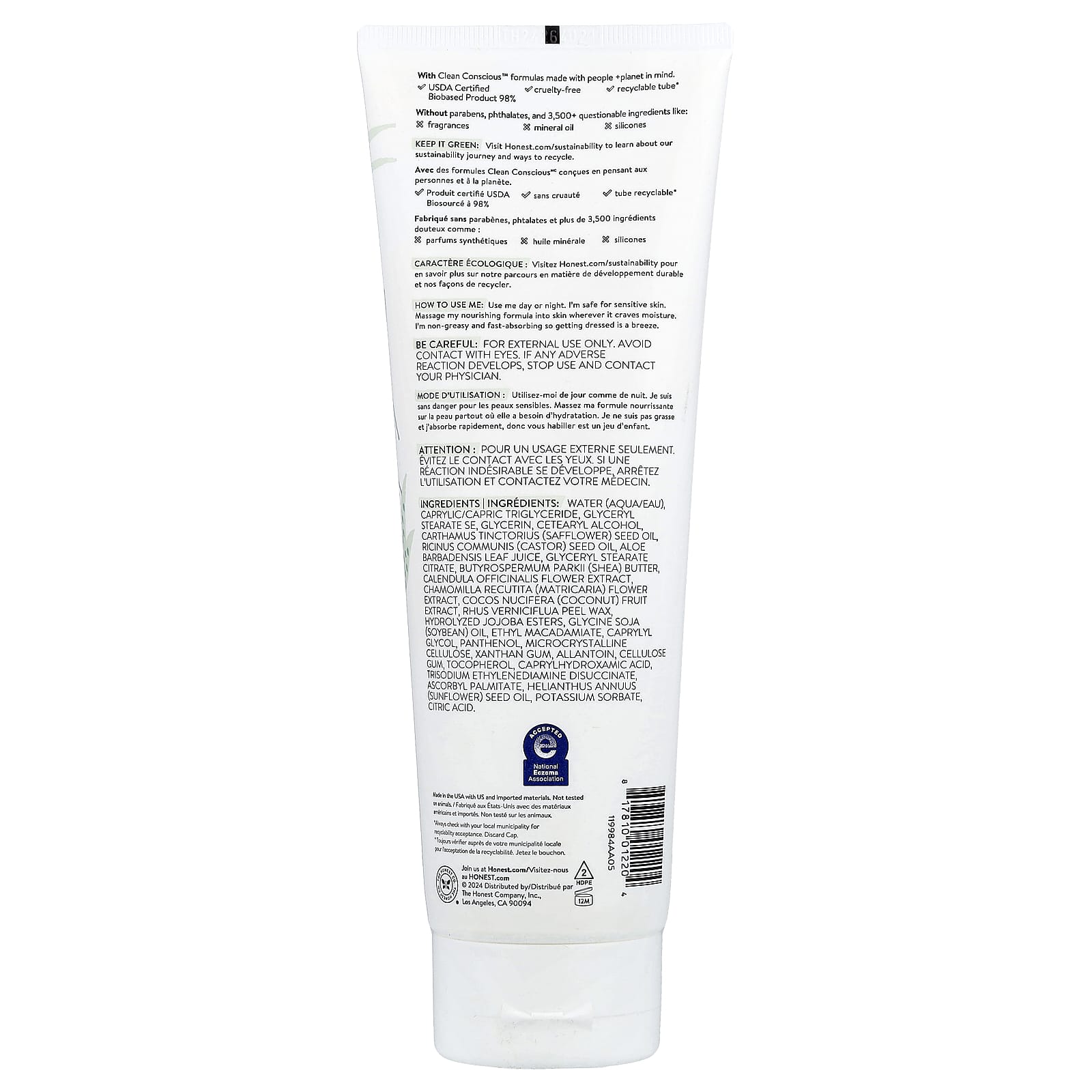 Água (aqua/eau), caprylic/capric triglyceride, monoestearato de glicerila autoemulsionável, glicerina, álcool cetoestearílico, óleo da semente de Carthamus tinctorius (cártamo), óleo da semente de Ricinus communis (rícino), suco da folha de Aloe barbadensis, citrato de monoestearato de glicerila, manteiga de Butyrospermum parkii (karité), extrato da flor de Calendula officinalis, extrato da flor de Chamomilla recutita (matricária), extrato da fruta de Cocos nucifera (coco), cera da casca de Rhus verniciflua, ésteres de jojoba hidrolisados, óleo de Glycine soja (soja), macadâmia etílica, caprylyl glycol, pantenol, celulose microcristalina, goma xantana, alantoína, goma de celulose, tocoferol, caprylhydroxamic acid, trisodium ethylenediamine disuccinate, palmitato de ascorbila, óleo da semente de Helianthus annuus (girassol), sorbato de potássio, ácido cítrico.