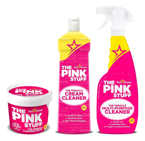 A linha Pink Stuff, incluindo a pasta de limpeza Miracle, o spray multiuso e o creme de limpeza, oferece uma solução de limpeza abrangente para realizar várias tarefas de limpeza em casa. Cada produto desta linha foi projetado pensando na eficácia e versatilidade, permitindo lidar com diferentes tipos de manchas, sujeira e fuligem em uma infinidade de superfícies. Aqui está uma breve visão geral de cada produto e o que os torna especiais: