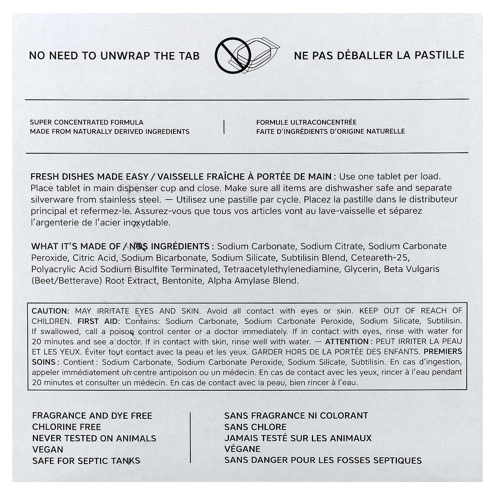 Uma visão fresca da graxa. Um agente de pré-hidratação, limpeza e enxágue, tudo em um, esses Dish Tabs removem os resíduos de alimentos e deixam a louça e os copos brilhantes. Resistentes à gordura, nossos comprimidos são biodegradáveis e seguros para tanques sépticos.