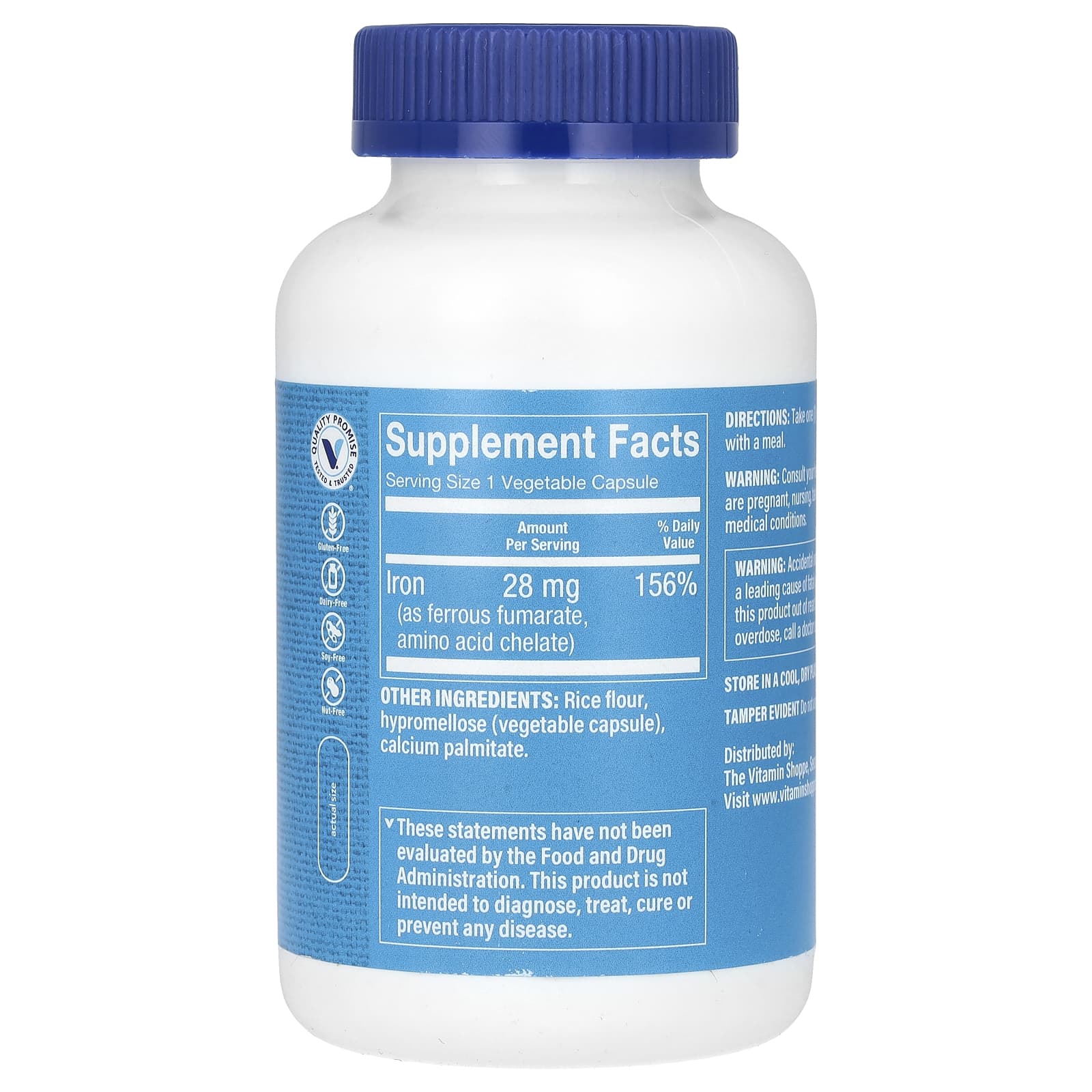Perfeitas para ajudar você a atender às suas necessidades diárias, as cápsulas de Ferro da marca Vitamin Shoppe® contêm 28 mg de 3 formas de boa absorção deste importante mineral.
