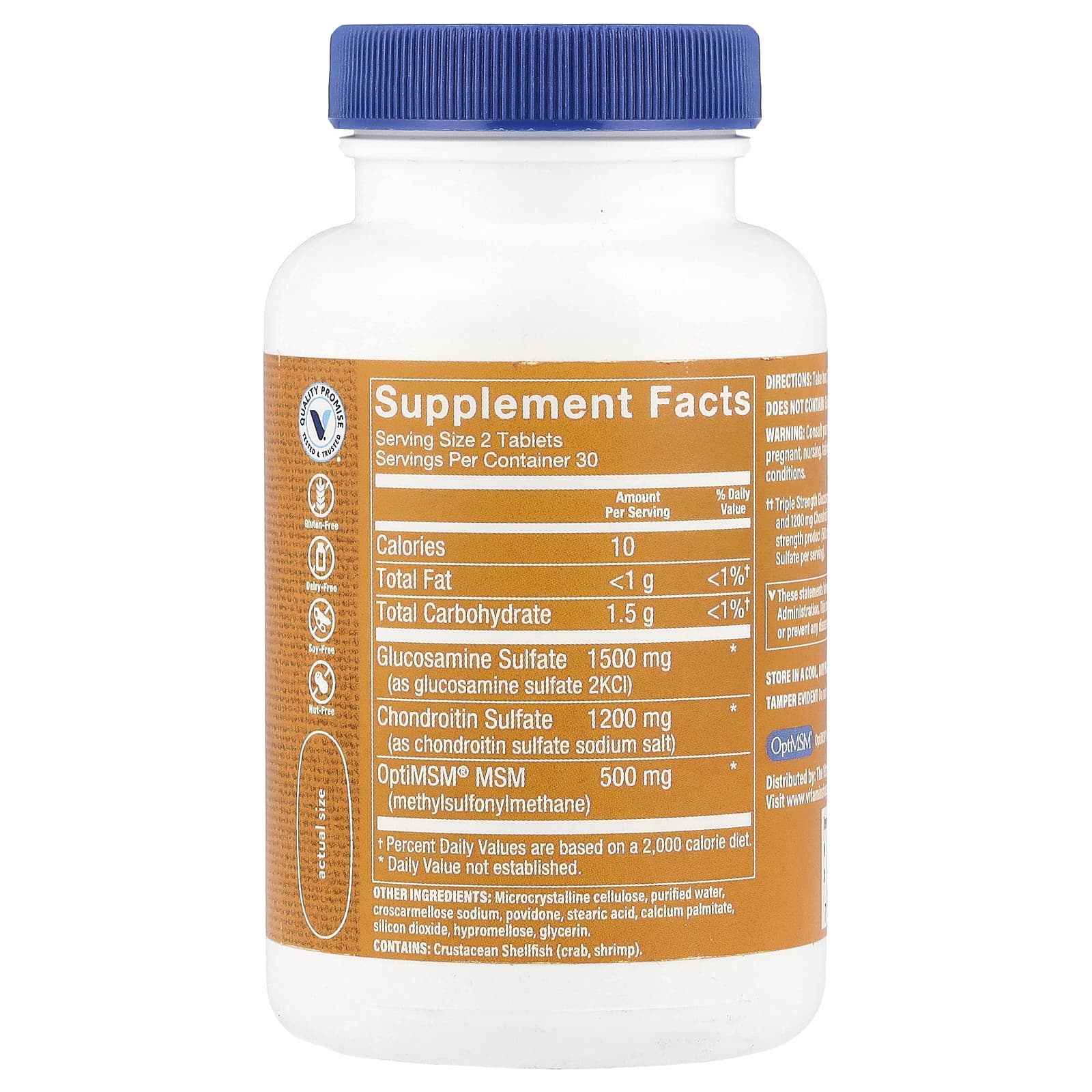 ††Glicosamina com MSM de Potência Tripla (1.500 mg de Sulfato de Glicosamina e 1.200 mg de Sulfato de Condroitina por dose) em comparação com nosso produto de dosagem regular (500 mg de Sulfato de Glicosamina e 400 mg de Sulfato de Condroitina por dose).
