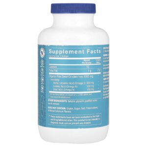 Cada cápsula softgel contém ingredientes orgânicos, não refinado, óleo da semente de linhaça prensado a frio.