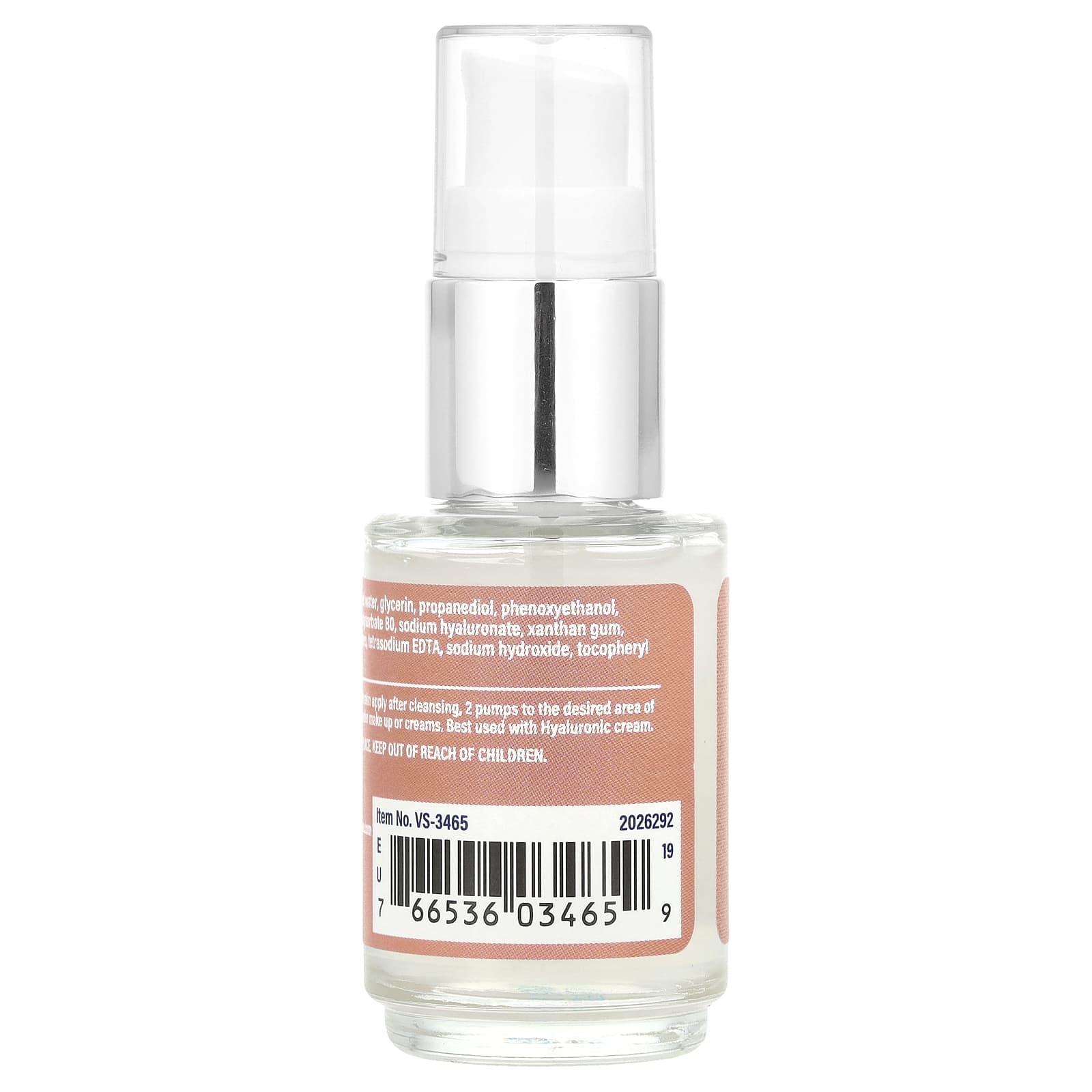 Água purificada, glicerina, propanediol, fenoxietanol, ethylhexyglycerin, polissorbato 80, hialuronato de sódio, goma xantana, ésteres de jojoba hidrolisados, EDTA tetrassódico, hidróxido de sódio, acetato de tocoferol, ácido cítrico.