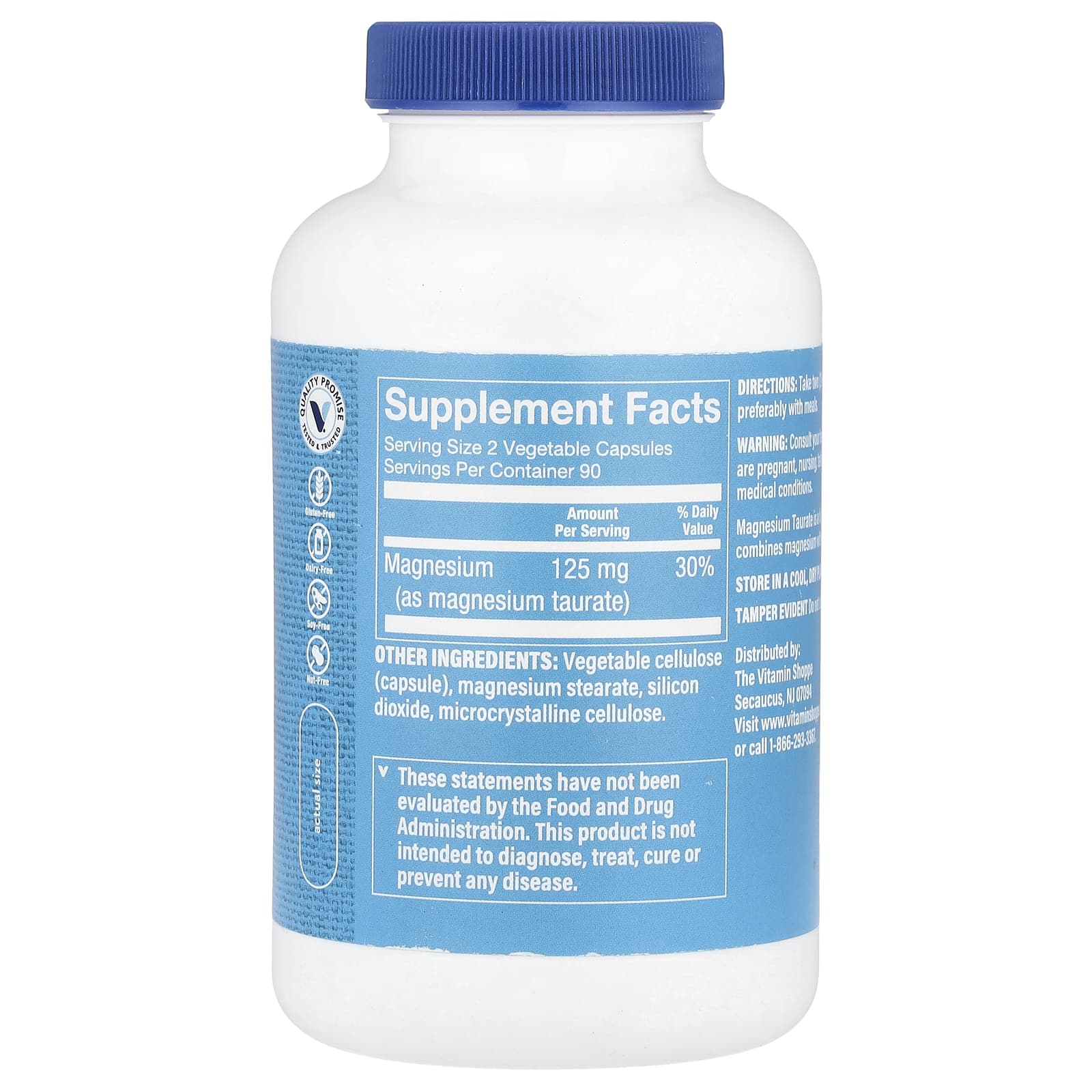 The Vitamin Shoppe Taurato de Magnésio 180 Cápsulas Vegetais (625 mg por Cápsula)