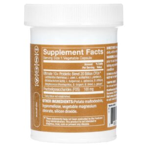 | Mistura Probiótica Ultimate 10+ Lactobacillus rhamnosus, L. casei, L. acidophilus, L. plantarum, Bifidobacterium lactis, L. bulgaricus, L. salivarius, B. bifidum, Streptococcus thermophilus, B. longum, B. breve, L. gasseri |