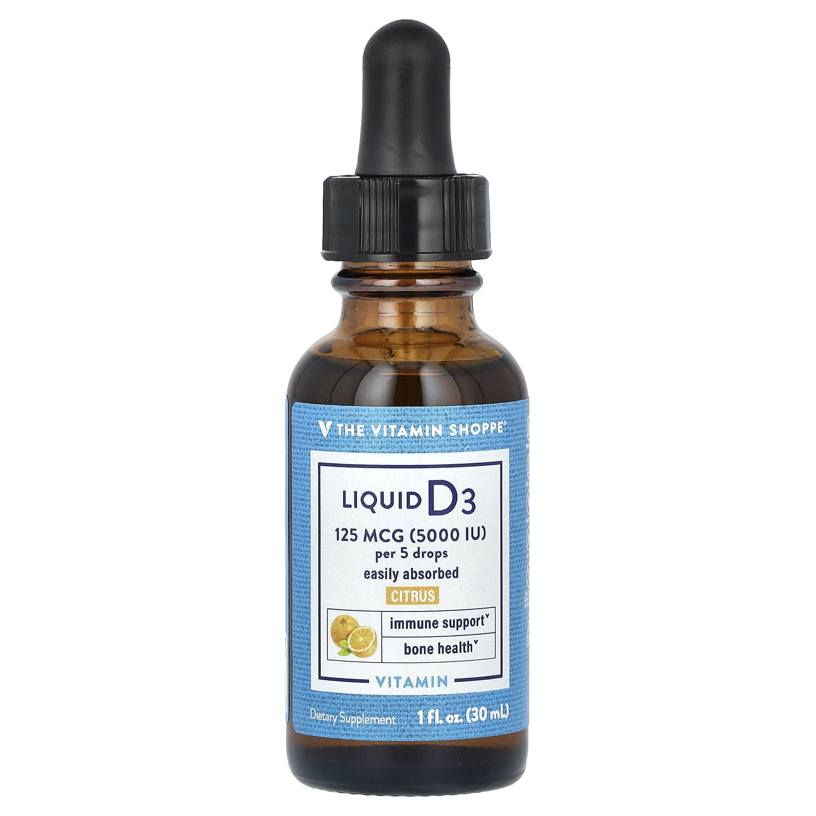The Vitamin Shoppe Vitamina D3 Líquida Cítricos 125 mcg (5.000 UI) 30 ml (1 fl oz) – The Vitamin Shoppe Suplementos Vitaminas Vitamina D.